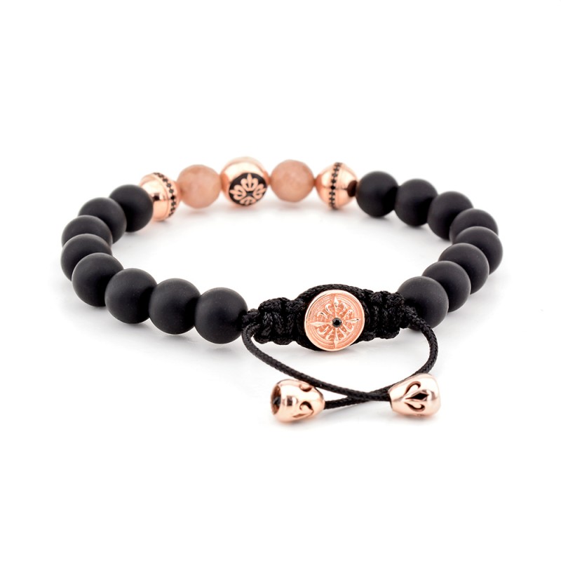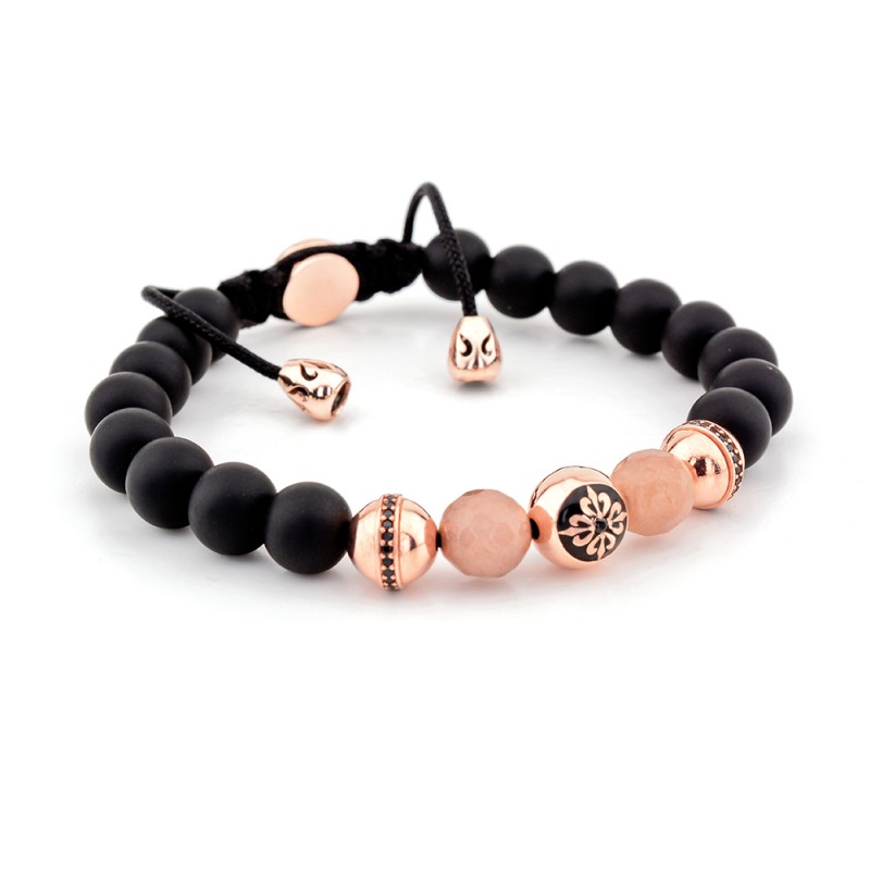 - كرة مطلي بالذهب الوردي عيار 925 مع شعار مطلي بالمينا الفضي ، الحجر الأسود (CZ)