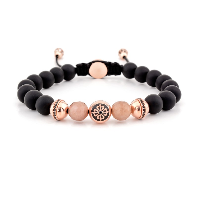 - 9mm 925 Rose Altın Kaplama Gümüş Mineli Logolu Top, Siyah Taşlı (CZ)